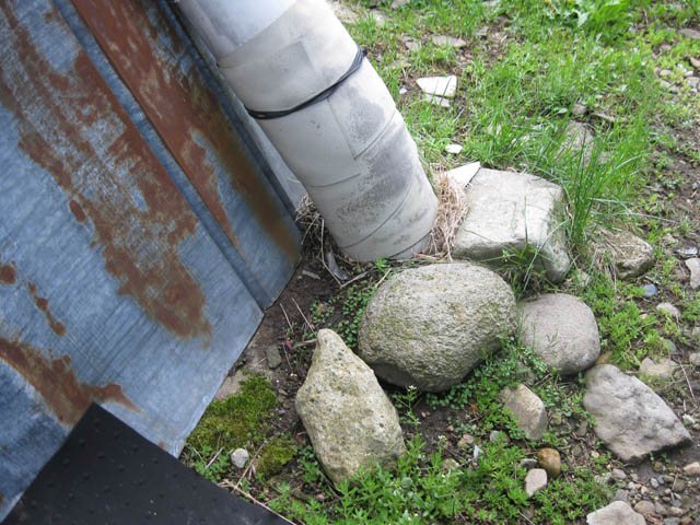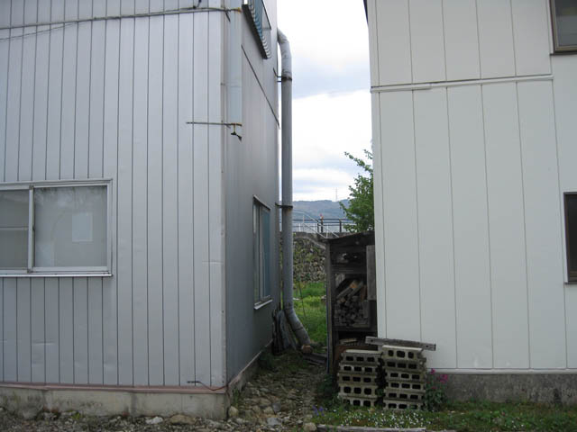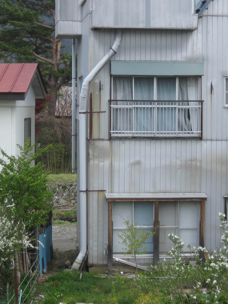 | 3階トイレ下は窓のようなものがでっぱっていて、それを避けるようにすっとん管が下へ伸びている。 |
