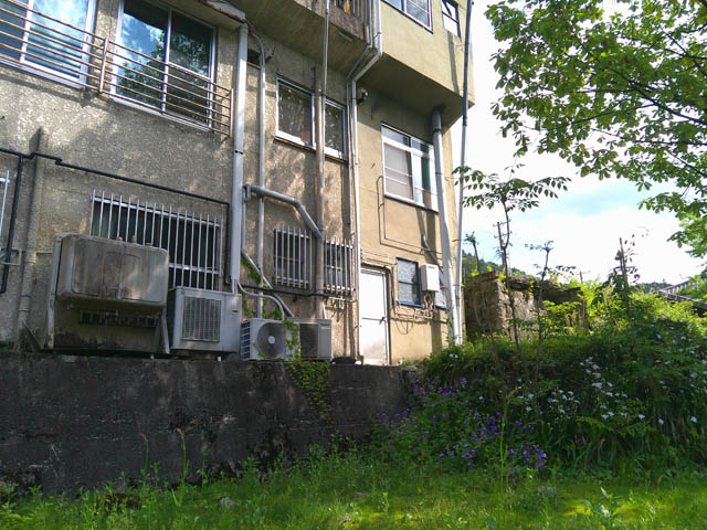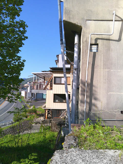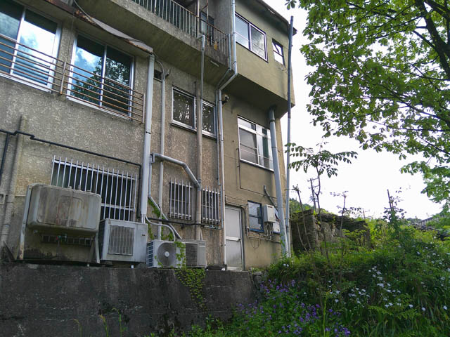 | これが建物の外観。3階トイレ下からすっとん管(ボットン筒)が垂れている。 |
