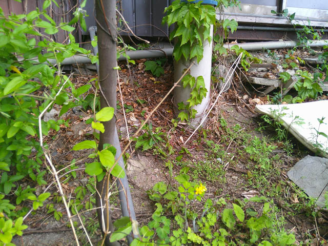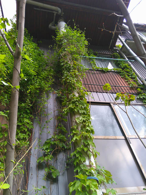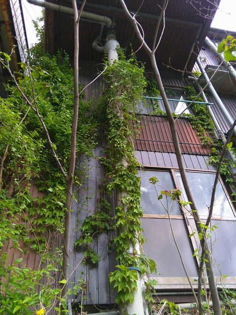 | 3階トイレのすっとん管には植物が巻き付いている。 |