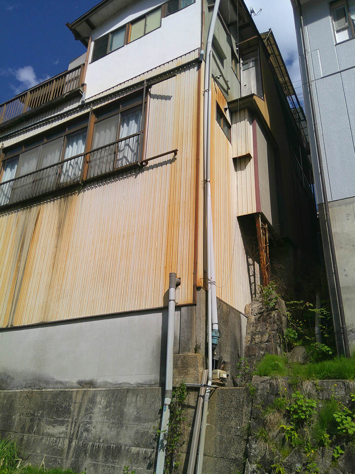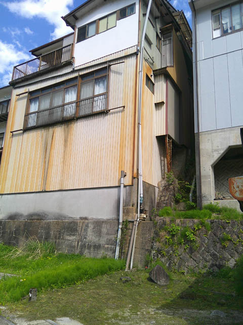 | 長野県木曽郡南木曽町にある崖際3階建住宅。 崖際にあるため2階部分が入り口で、1階にも部屋があるが1階部分も2.5階相当の高さがあり、2階部分も3.5階相当の高さはある。 2階部分にトイレがあって現在は浄化槽の水洗式を使用しているが、臭突が残っていることから以前はすっとん式を使用していたらしい。 |