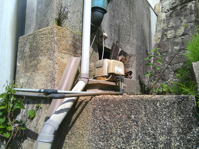 | トイレ下には浄化槽のブロアーがある。 現在は浄化槽の水洗式を使用しているようだ。 |